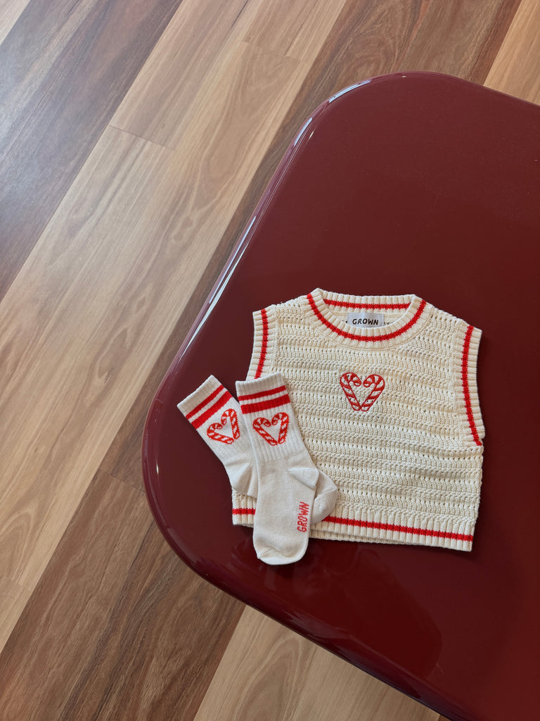 Candy Cane Heart Socks - Milk